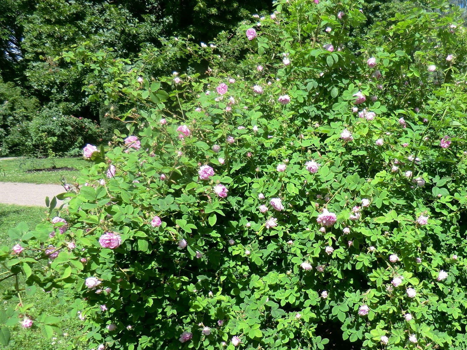 Og her tett på, en herlig moserose som er høyere enn meg og med masse ny vekst.